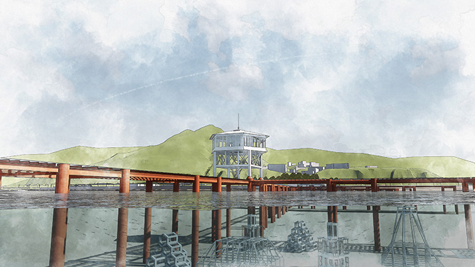 釣りをすることは、うつろう自然とつながることである。 兵庫県神戸市にある須磨海づり公園は、自然と人のつながりを 50 年を超えて支えてきた。 しかし、経年劣化と台風の被害を受けた今、転換点を迎えている。 これまで愛されてきた「釣り」と、破損した釣台の「魚礁化」という新たな挑戦を拡張し、 再生に向かう海づり公園の「これから」を描く。 うつろう自然と人々の営みを4つの活動拠点がつなぎ、須磨を介した大きなうつろいが動き出す。