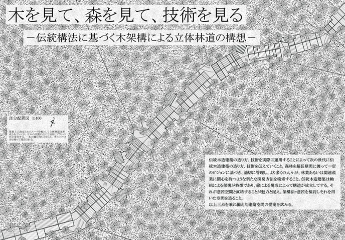 木を見て、森を見て、技術を見る:伝統構法に基づく木架構による立体林道の構想